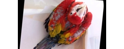 There’s nothing flashier than a scarlet macaw, making it a popular large bird among fanciers and novices alike. It’s not unusual for someone to begin his or her pet bird journey with a scarlet, though this bird is often not a great choice for the novice. The scarlet is just so gorgeous and filled with personality, it’s tough for someone with a few extra bucks in their pocket to refuse. The scarlet ranges in size from 32 to 39 inches in length, and is primarily red, as its name implies, with a band of yellow in the center of the wings, followed by a band of blue leading to the flight feathers. In some birds, there may be a band of green where the yellow meets the blue. Some people confuse the scarlet and the green-winged macaw, though there are prominent differences. The green-winged, in general, is a much larger bird and has a large band of green on the wing. The primary difference, however, is in the face – the scarlet has a naked face, and the green winged macaw has tiny red lines of feathers circling down from the eyes onto the face patch. Both birds have a similarly colored beak, a black lower mandible and a horn-colored upper mandible (with a little bit of black where the two parts of the beak meet).